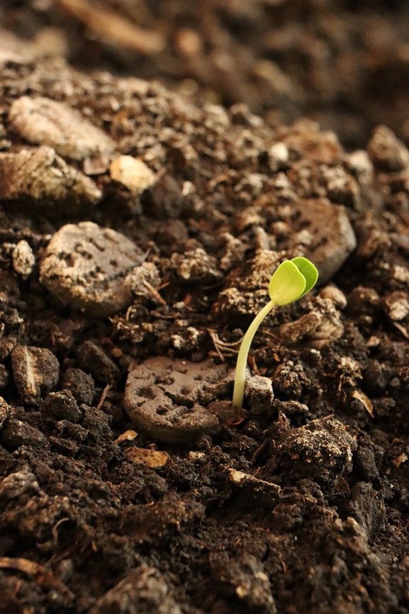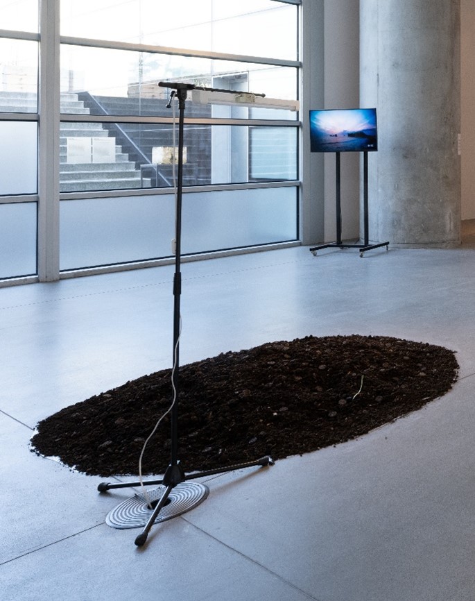 prostorna instalacija napravljena od 50-300 novčića od zemlje i sjemena rogača